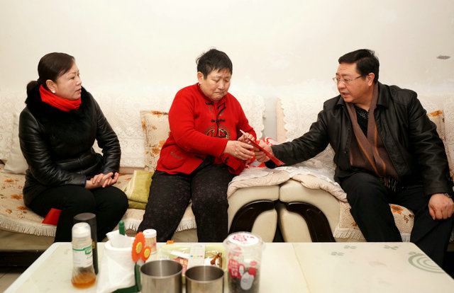 在胡新胜的家中,师残联理事长马春明和他的母亲亲切交谈。胡新胜是一位患有重度精神残疾的残疾人,一直以来,他都是依赖老母亲的悉心照顾,逢年过节,师党委及公司党委都来看望他们。师残联理事长马春明感谢她长年以来对儿子的辛勤付出,为社会分忧解难做出了一份特殊的贡献。胡新胜的母亲激动的说:“领导过年过节都记得我们,我会鼓励我儿子好好的活下去,积极面对生活。”